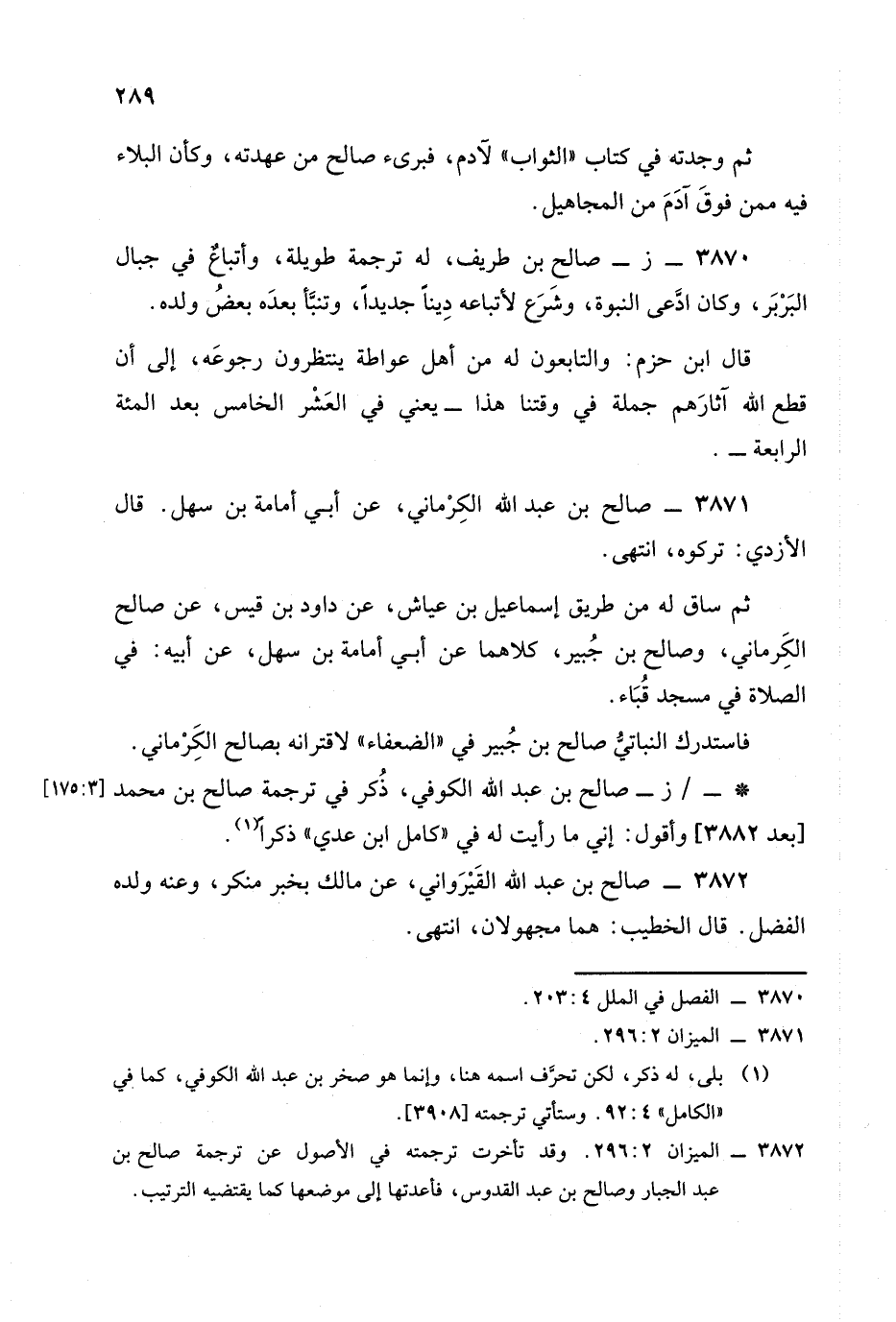 ذكر في ترجمة صالح بن محمد (بعد3882) وأقول: إني ما رأيت له في كامل ابن عَدِي ذكرا.