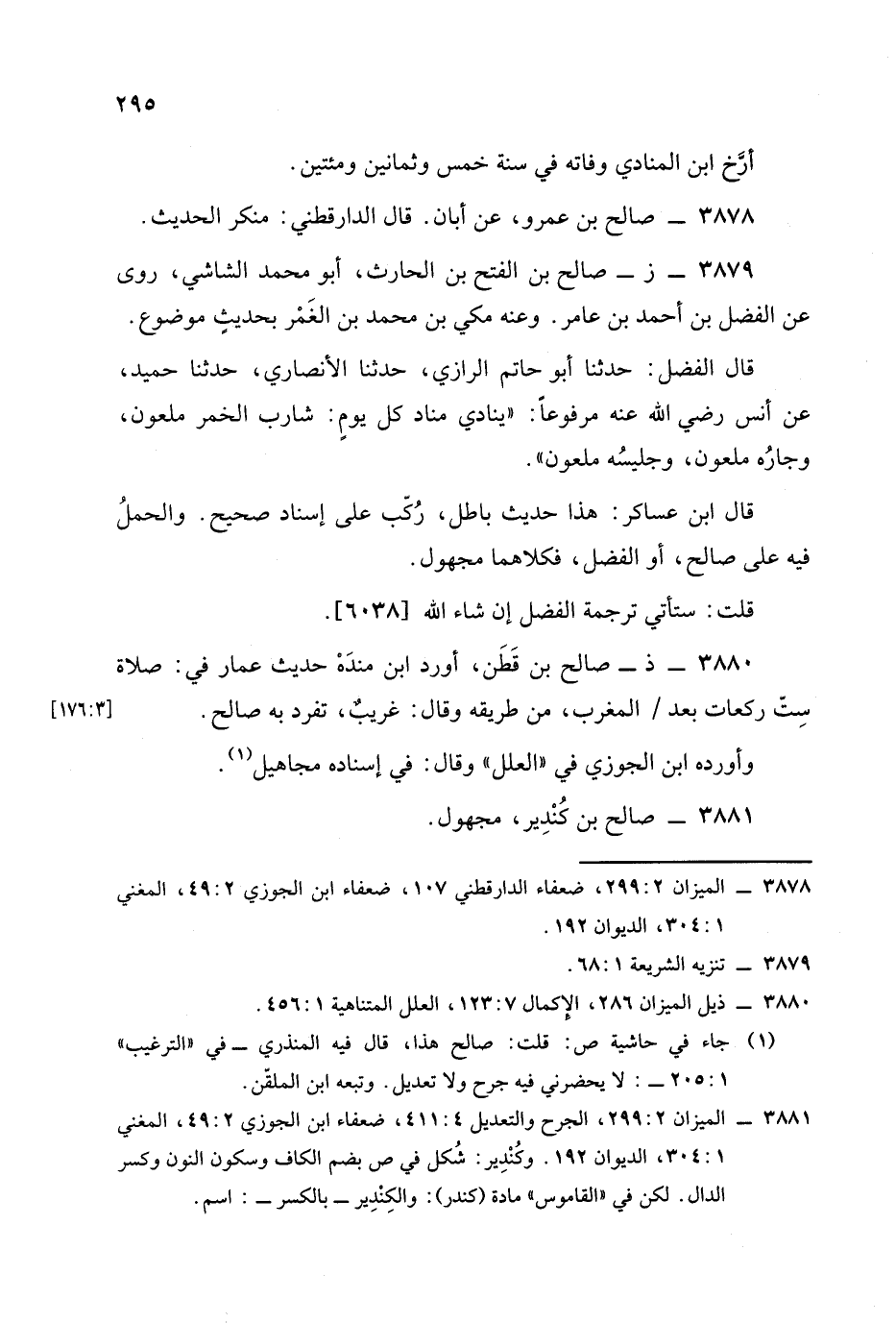 قال الفضل: حدثنا أبو حاتم الرازي , حَدَّثَنا الأنصاري حَدَّثَنا حميد، عَن أَنس رضي الله عنه مرفوعا: ينادي مناد كل يوم شارب الخمر ملعون وجاره ملعون وجليسه ملعون.