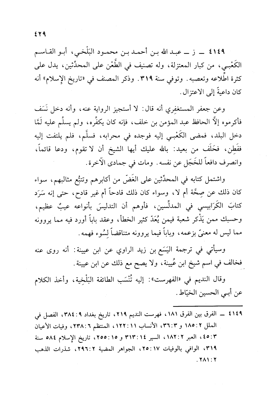 4149 - (ز): عبد الله بن أحمد بن محمود البلخي أبو القاسم الكعبي.