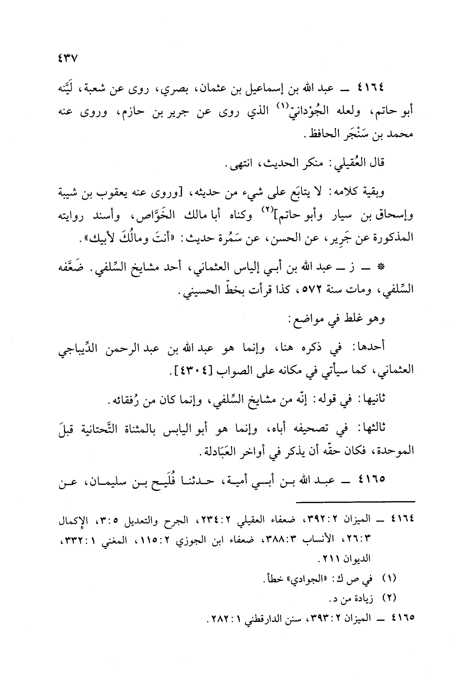 أحدهما: في ذكره هنا وإنما هو عبد الله بن عبد الرحمن الديباجي العثماني كما سيأتي في مكانه على الصواب (4304).
