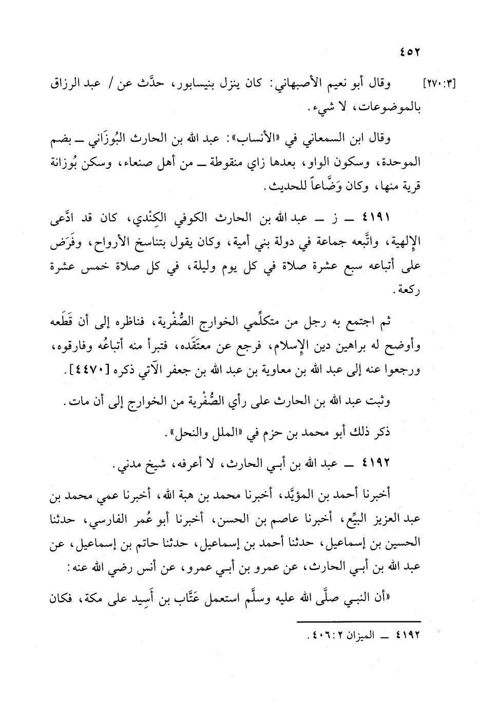 ثم اجتمع به رجل من متكلمي الخوارج الصفرية فناظره إلى أن قطعه وأوضح له براهين دين الإسلام فرجع عن معتقده فتبرأ منه أتباعه وفارقوه ورجعوا عنه إلى عبد الله بن معاوية بن عبد الله بن جعفر الآتي ذكره (4470).