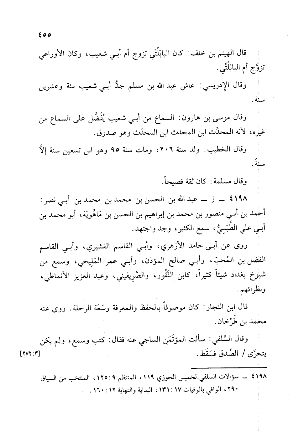 وقال السلفي: سألت المؤتمن الساجي عنه فقال: كتب وسمع ولم يكن يتحرى الصدق فسقط. -[456]-
