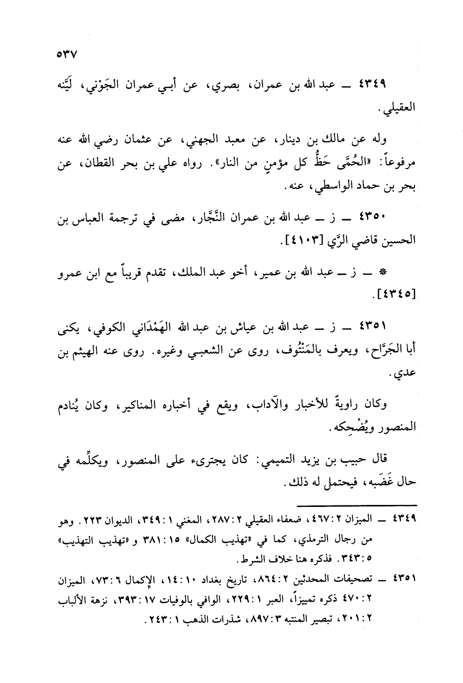 4351 - (ز): عبد الله بن عياش بن عبد الله الهمداني الكوفي، يكنى أبا الجراح، ويعرف بالمنتوف.