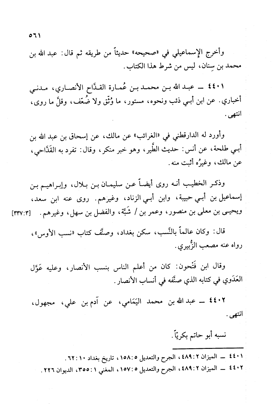 4401 - عبد الله بن محمد بن عمارة القداح الأنصاري.