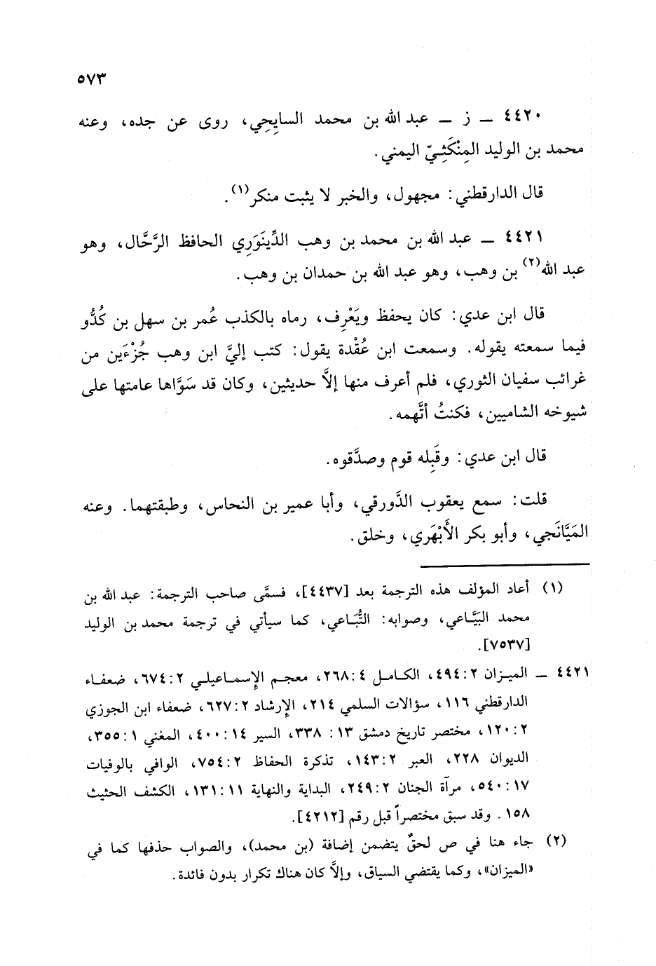 4421 - عبد الله بن محمد بن وهب الدينوري الحافظ الرحال، وهو عبد الله بن وهب وهو عبد الله بن حمدان بن وهب.