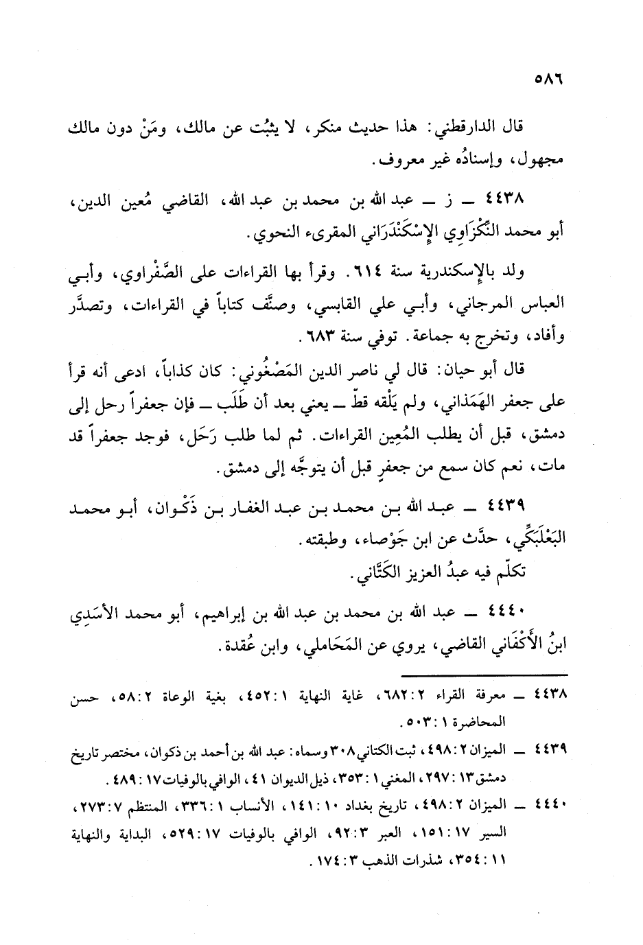 4438 - (ز): عبد الله بن محمد بن عبد الله القاضي معين الدين أبو محمد النكزاوي الإسكندراني المقرىء النحوي.