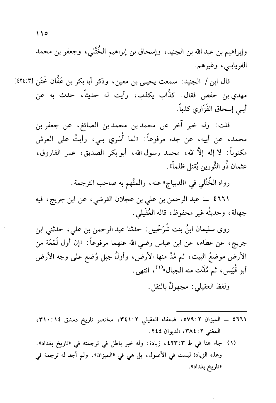 ولفظ العقيلي: مجهول بالنقل. -[116]-
