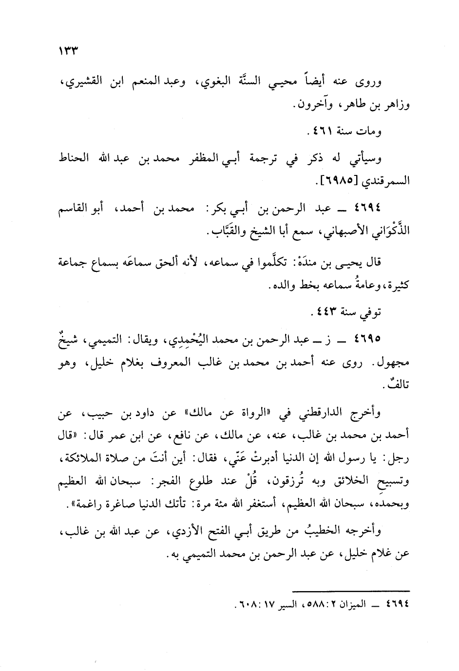 وأخرجه الخطيب من طريق أبي الفتح الأزدي، عَن عَبد الله بن غالب عن غلام خليل، عَن عَبد الرحمن بن محمد التميمي به. -[134]-