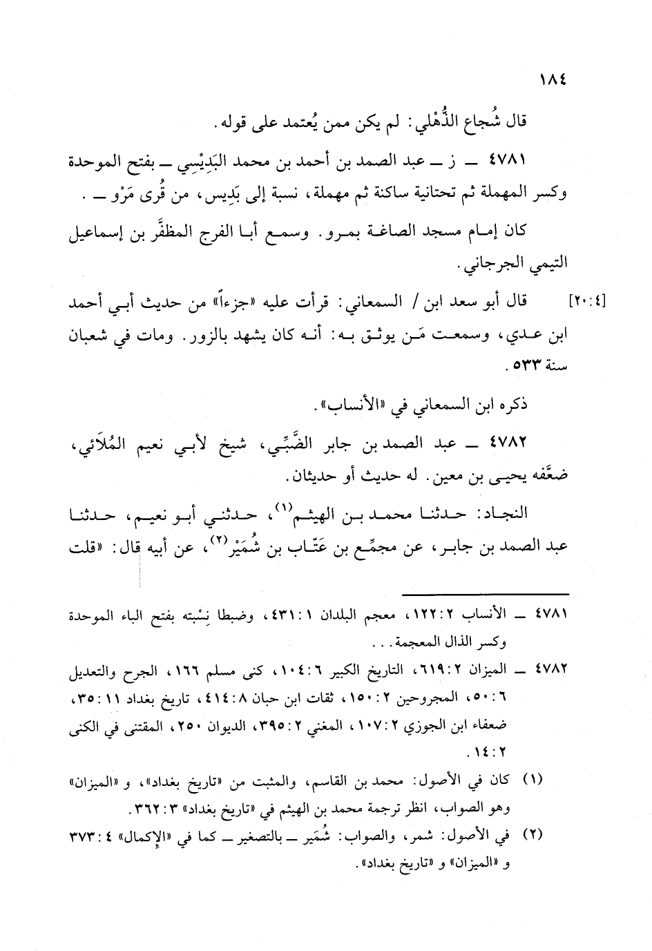 4781 - (ز): عبد الصمد بن أحمد بن محمد البديسي - بفتح الموحدة وكسر المهملة ثم تحتانية ساكنة ثم مهملة نسبة إلى بديس من قرى مرو.