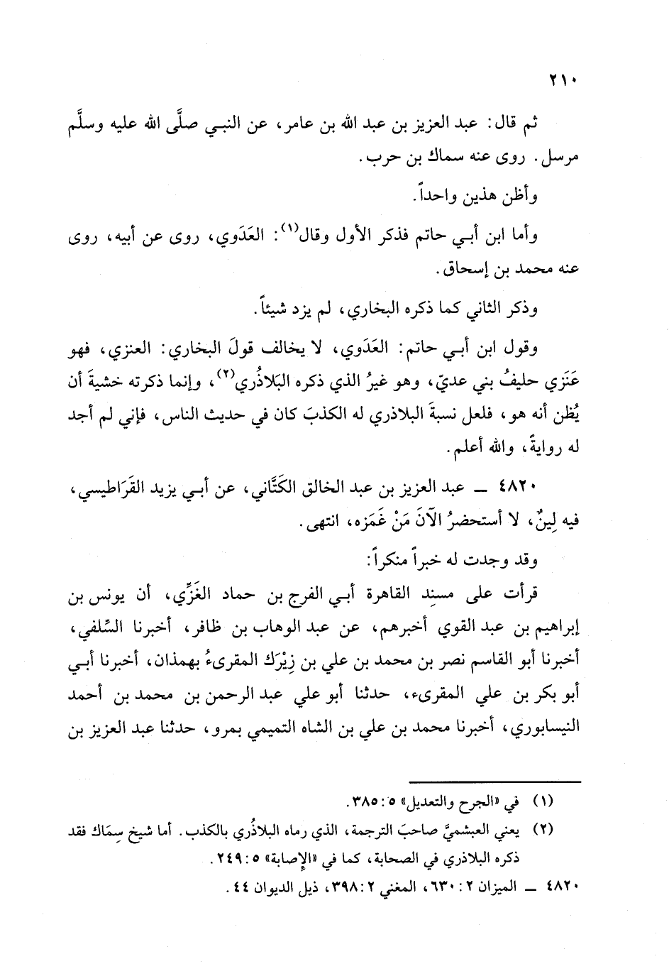 قرأت على مسند القاهرة أبي الفرج بن حماد الغزي أن يونس بن إبراهيم بن عبد القوي أخبرهم، عَن عَبد الوهاب بن ظافر أخبرنا السلفي أخبرنا أبو القاسم نصر بن محمد بن علي بن زيرك المقرىء بهمذان أخبرنا أبي أبو بكر بن علي المقرىء , حدثنا أبو علي عبد الرحمن بن محمد بن أحمد النيسابوري أخبرنا محمد بن علي بن الشاه التميمي بمرو , حدثنا عبد العزيز بن عبد الخالق بمصر , -[211]-