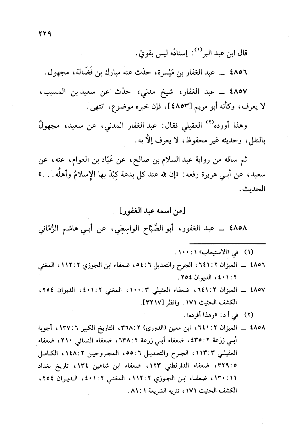 وهذا أورده العقيلي فقال: عبد الغفار المدني عن سعيد مجهول بالنقل وحديثه غير محفوظ لا يعرف إلا به.