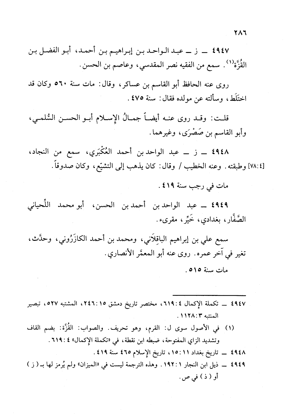 4948 - (ز): عبد الواحد بن أحمد العكبري.