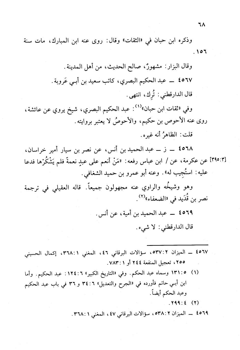 وفي ثقات ابن حبان: عبد الحكيم البصري شيخ يروي عن عائشة , روى عنه الأحوص بن حكيم , والأحوص لا يعتبر بروايته.
