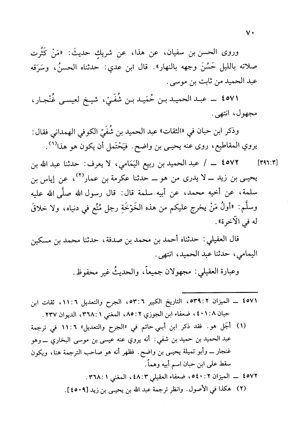 قال العقيلي: حدثناه أحمد بن محمد بن صدقة , حدثنا محمد بن مسكين اليمامي , حدثنا عبد الحميد، انتهى.