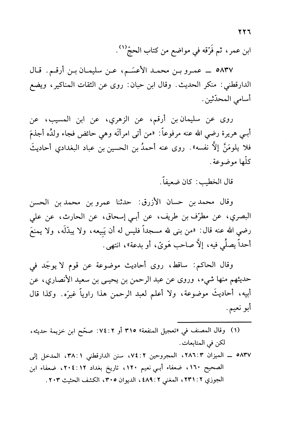 5837 - عَمْرو بن محمد [بن الحسن البصري] الأعسم.