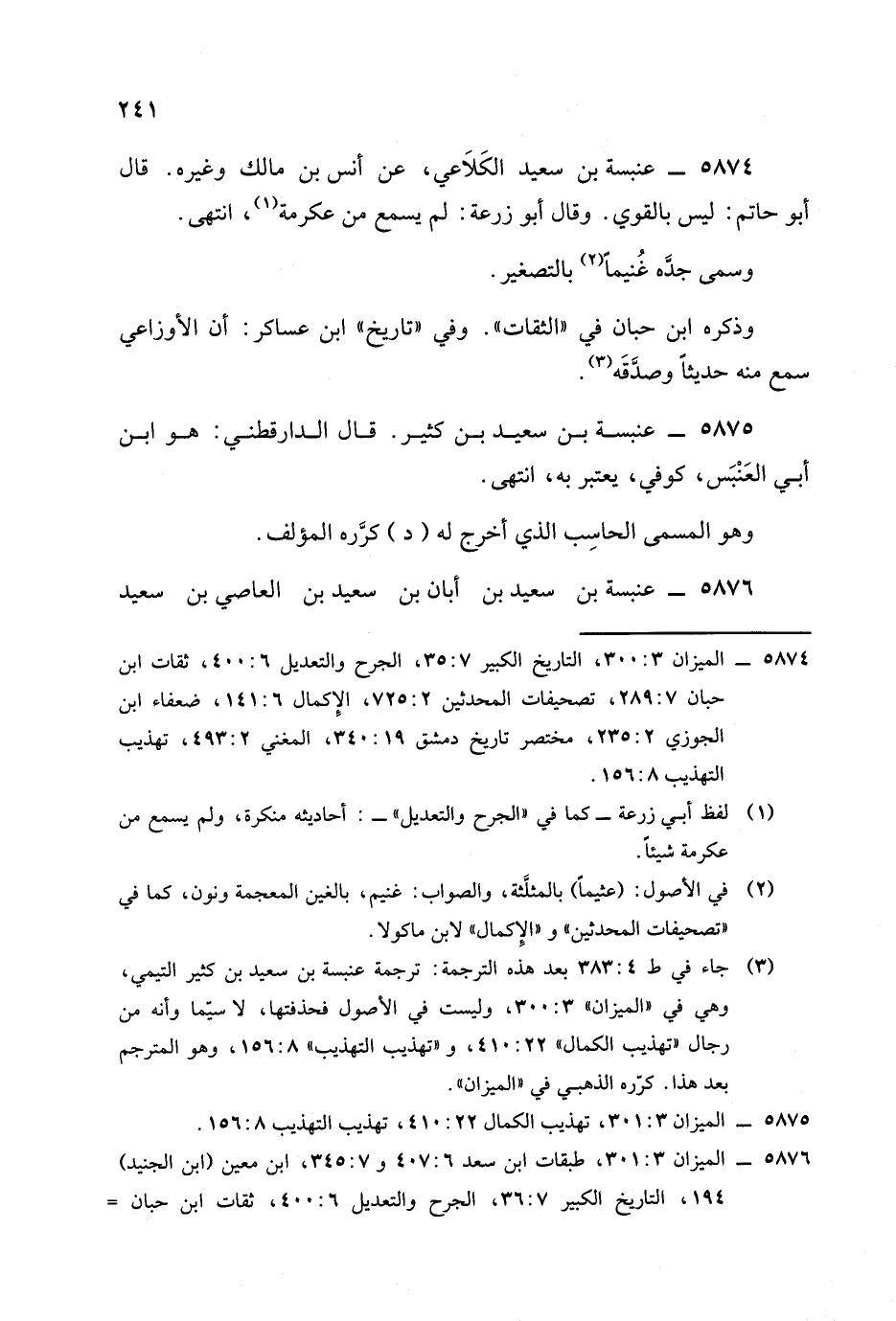 5876 - عنبسة بن سعيد بن أبان بن سعيد بن العاصي بن سعيد الأموي أخو يحيى بن سعيد. -[242]-