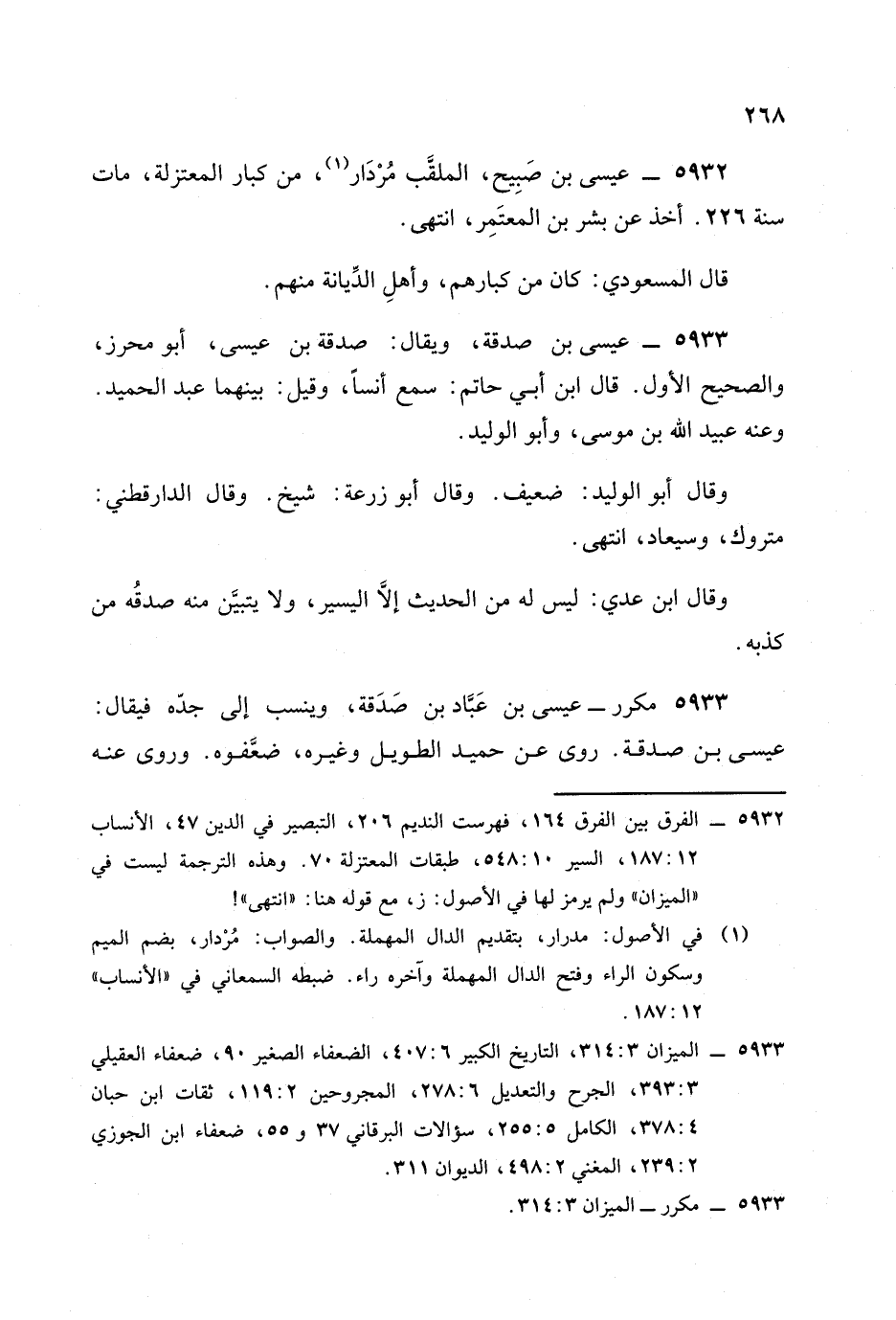 5933 - عيسى بن صدقة ويقال: صدقة بن عيسى أبو محرز والصحيح الأول [وهو عيسى بن عباد بن صدقة]