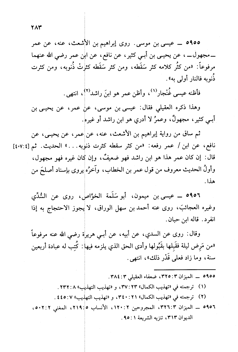 ثم ساق من رواية إبراهيم بن الأشعث عنه عن عمر عن يحيى عن نافع، عَنِ ابن عمر رفعه: من كثر سقطه كثرت ذنوبه ... الحديث. ثم قال: إن كان عمر هذا هو ابن راشد فهو ضعيف , وإن كان غيره فهو مجهول , وأول الحديث معروف من قول عمر بن الخطاب , وآخره يروى بإسناد أصلح من هذا.