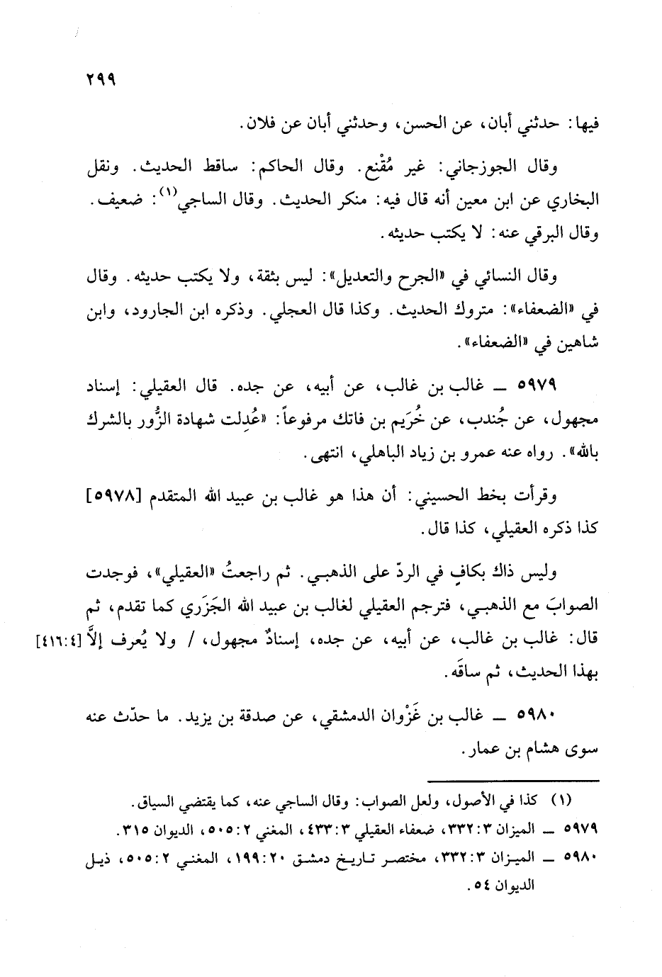 وليس ذاك بكاف في الرد على الذهبي , ثم راجعت العقيلي فوجدت الصواب مع الذهبي فترجم العقيلي لغالب بن عُبَيد الله الجزري كما تقدم. ثم قال: غالب بن غالب، عَن أبيه، عن جَدِّه إسناد مجهول، وَلا يعرف إلا بهذا الحديث , ثم ساقه.