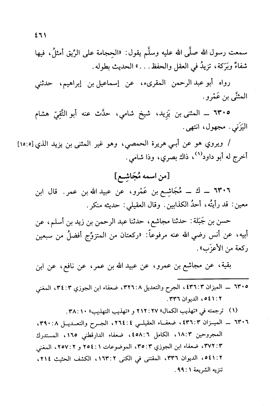 موسى بن الأسود ومخلد أبو محمد الحراني قالا: حدثنا مجاشع بن عَمْرو، عَن مُحَمد بن الزبرقان عن مقاتل، عَن أبي الزبير، عَن جَابر رضي الله عنه مرفوعا: أهل الجنة محتاجون إلى العلماء وذلك بأنهم يزورون ربهم في كل جمعة فيقول: تمنوا فيلتفتون إلى العلماء فيقولون: ما نتمنى؟ فيقولون: تمنوا عليه كذا فهم يحتاجون إليهم في الجنة.