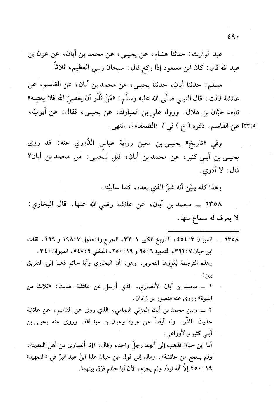 وعنه يحيى بن أبي كثير ومنصور ومن زعم أنه سمع من عائشة فقد وهم وليس هذا محمد بن أبان الجعفي ذاك كوفي ضعيف وهذا مدني ثبت.