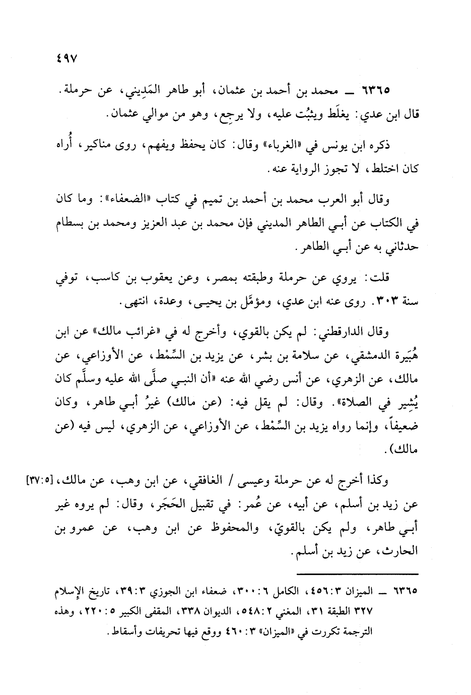 وقال أبو العرب محمد بن أحمد بن تميم في كتاب الضعفاء: وما كان في الكتاب، عَن أبي الطاهر المديني فإن محمد بن عبد العزيز، ومُحمد بن بسطام حدثاني به، عَن أبي الطاهر.