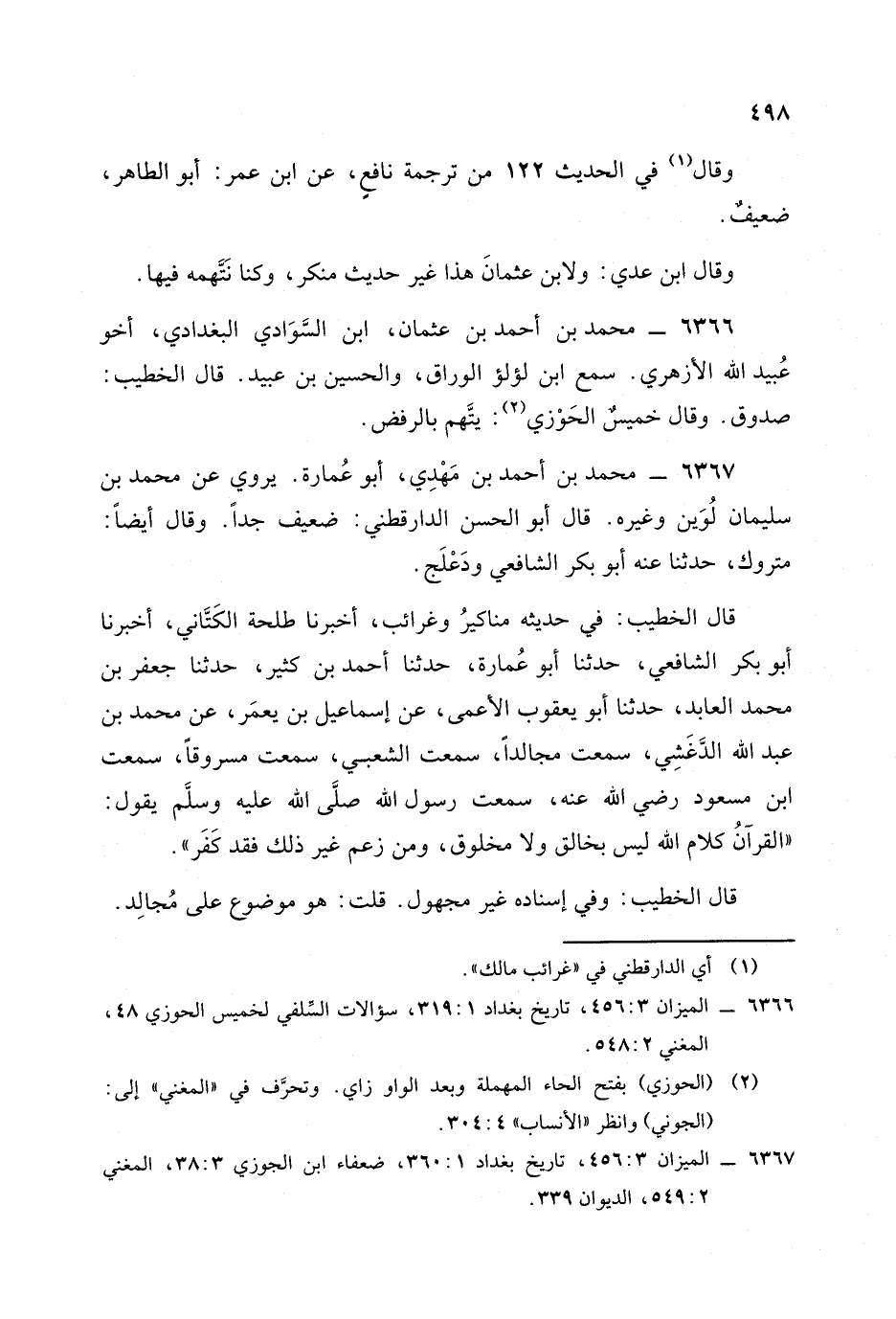 6366 - محمد بن أحمد بن عثمان ابن السوادي البغدادي أخو عُبَيد الله الأزهري.