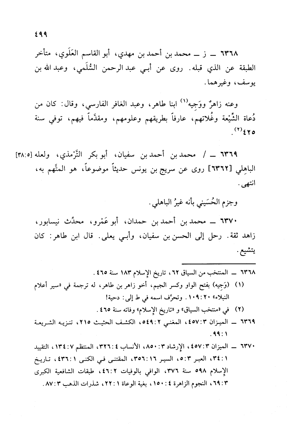 وعنه زاهر ووجيه ابنا طاهر وعبد الغافر الفارسي وقال: كان من دعاة الشيعة وغلاتهم عارفا بطريقهم وعلومهم ومقدما فيهم توفي سنة 425.