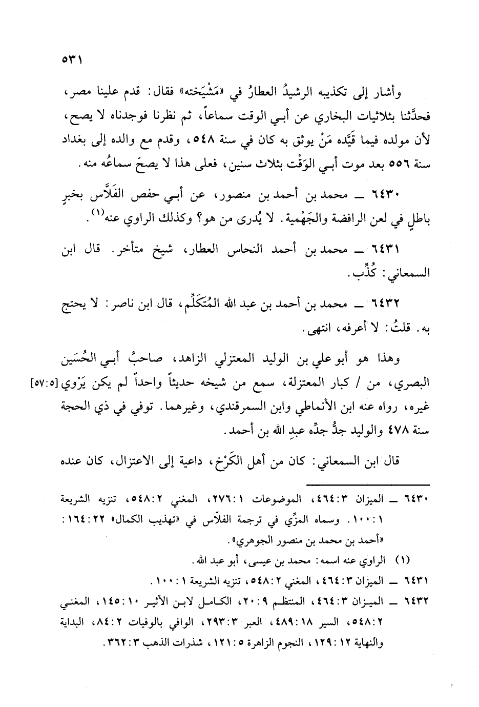 6432 - محمد بن أحمد بن عبد الله المتكلم [أبو علي بن الوليد المعتزلي]