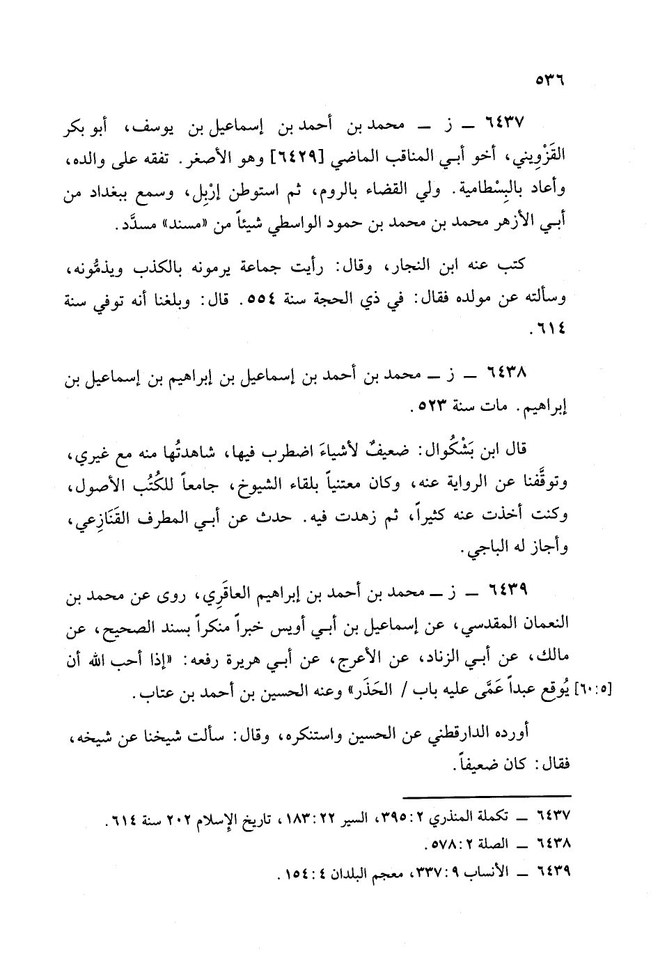 6438 - (ز): محمد بن أحمد بن إسماعيل بن إبراهيم بن إسماعيل بن إبراهيم.