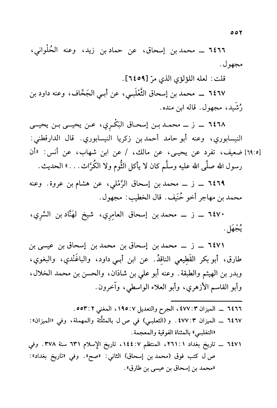 6471 - (ز): محمد بن إسحاق بن محمد بن إسحاق بن عيسى بن طارق أبو بكر القطيعي الناقد.