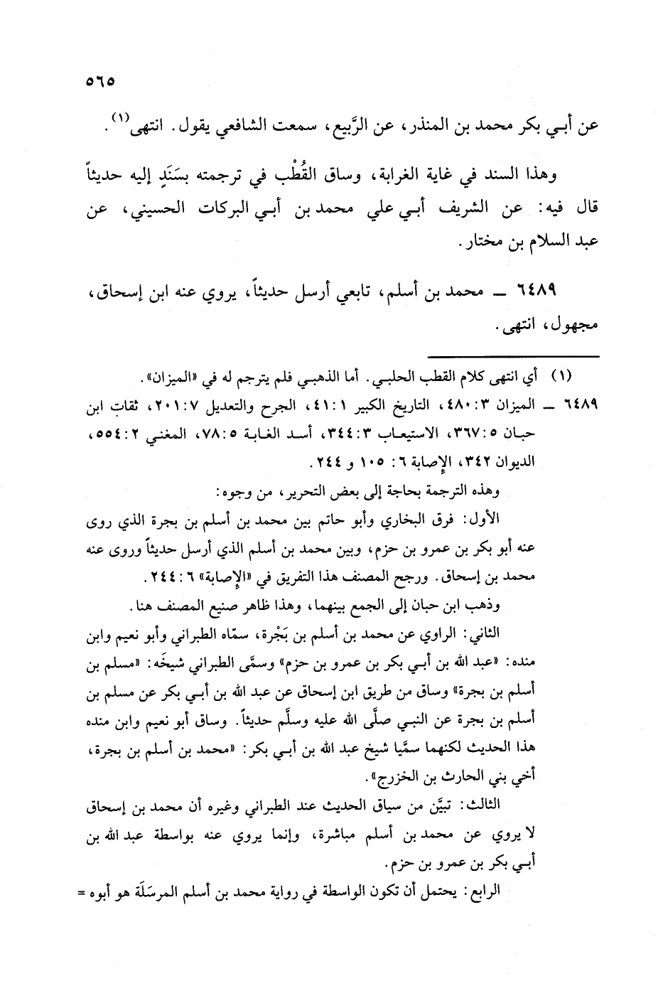 وقد ذكره ابن عبد البر في الاستيعاب وقال: حديثه مرسل , وإنما ذكره لأن له رؤية.