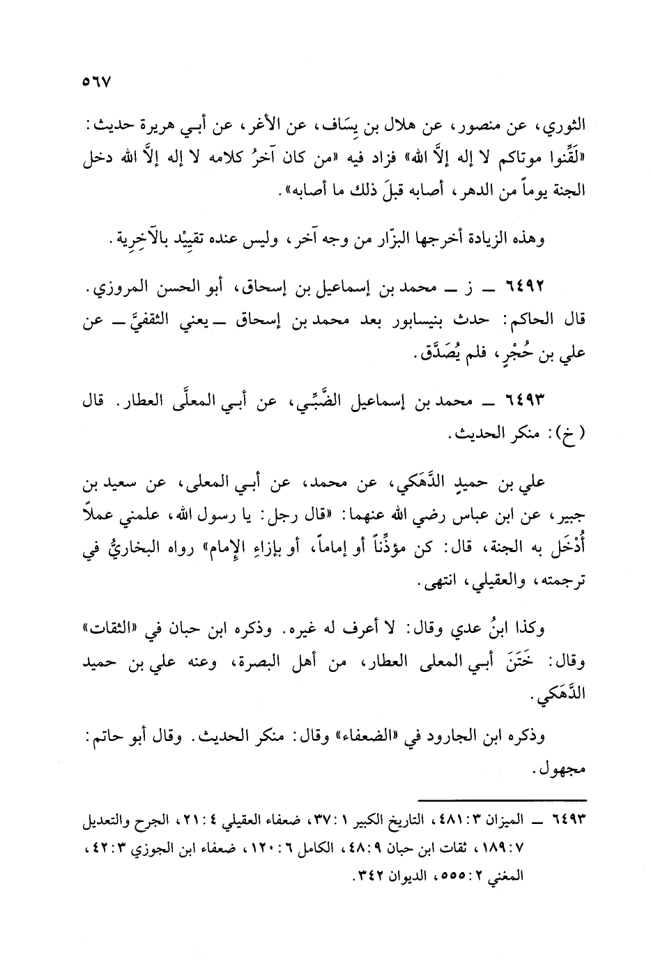 6492 - (ز): محمد بن إسماعيل بن إسحاق أبو الحسن المروزي.