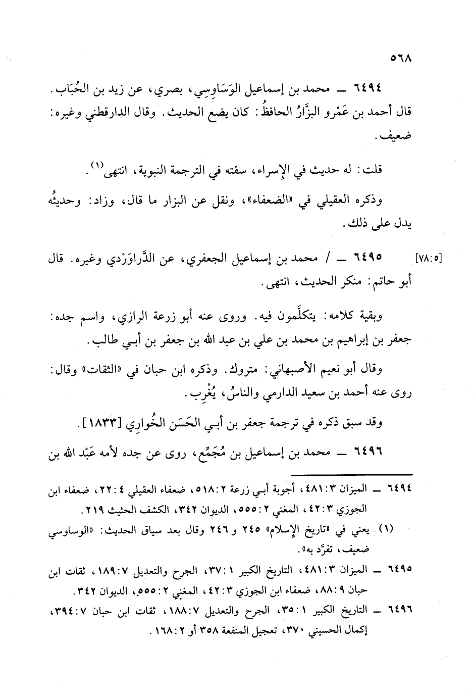 6495 - محمد بن إسماعيل [بن جعفر بن إبراهيم بن محمد بن علي بن عبد الله بن جعفر بن أبي طالب] الجعفري.