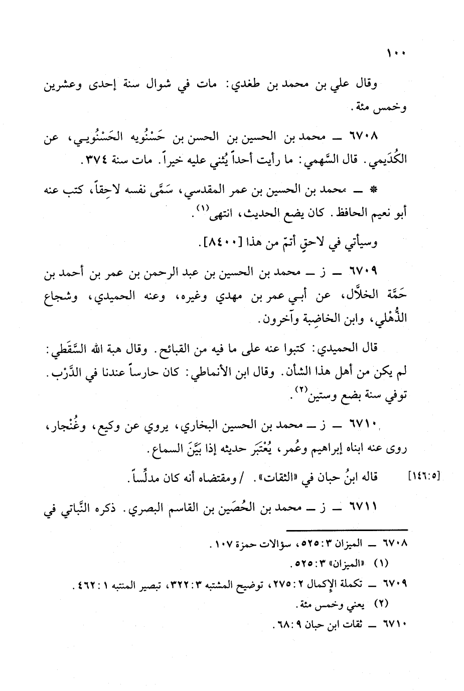 6709 - (ز): محمد بن الحسين بن عبد الرحمن بن عمر بن أحمد بن حمة الخلال.