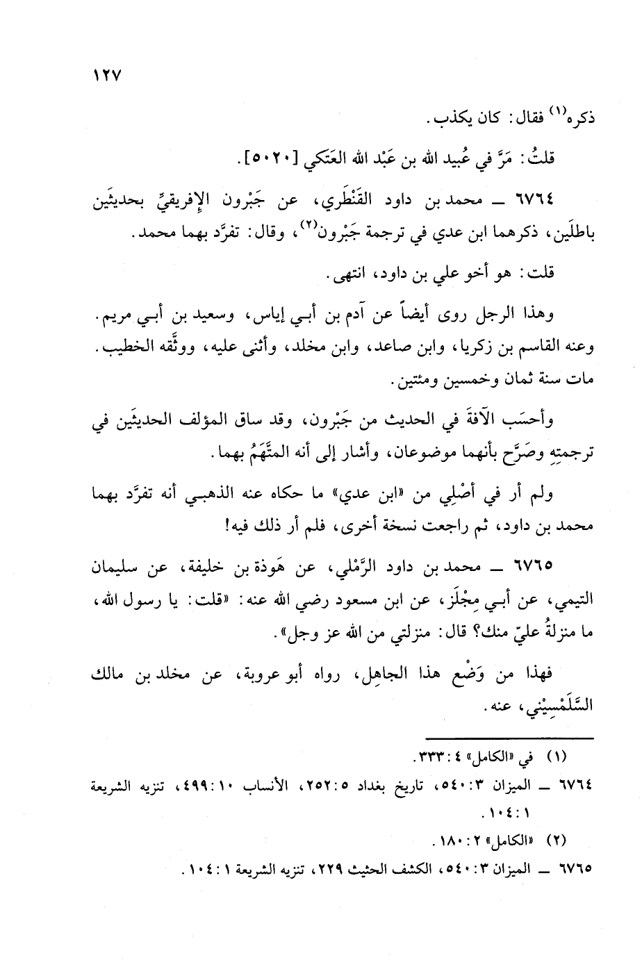ولم أر في أصلي من ابن عَدِي ما حكاه عنه الذهبي أنه تفرد بهما محمد بن داود ثم راجعت نسخة أخرى فلم أر ذلك فيه!.