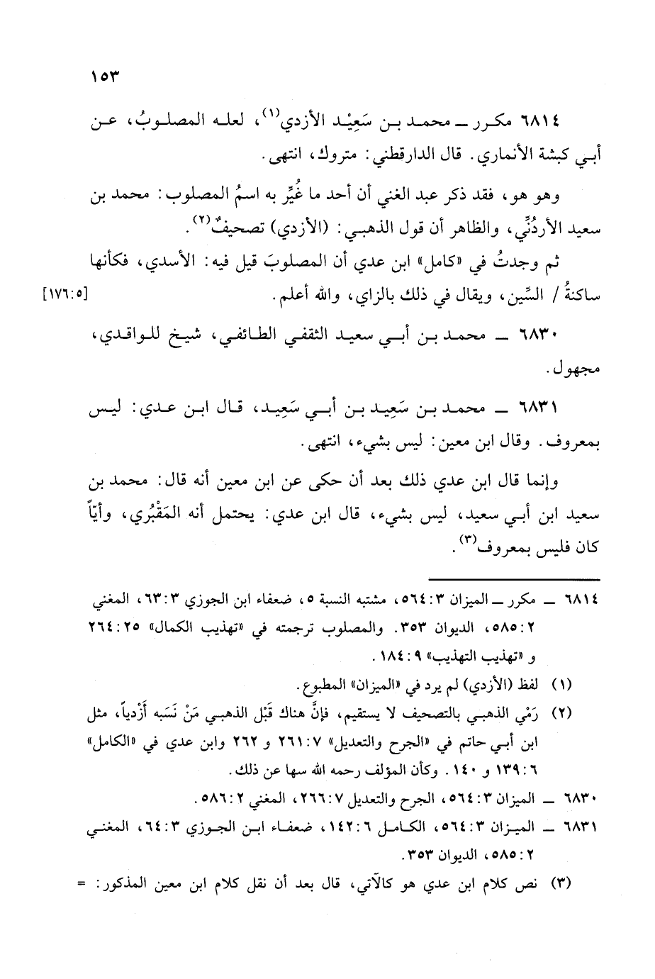 وهو هو , فقد ذكر عبد الغني أن أحد ما غير به اسم المصلوب: محمد بن سعيد الأردني , والظاهر أن قول الذهبي: (الأزدي) تصحيف.