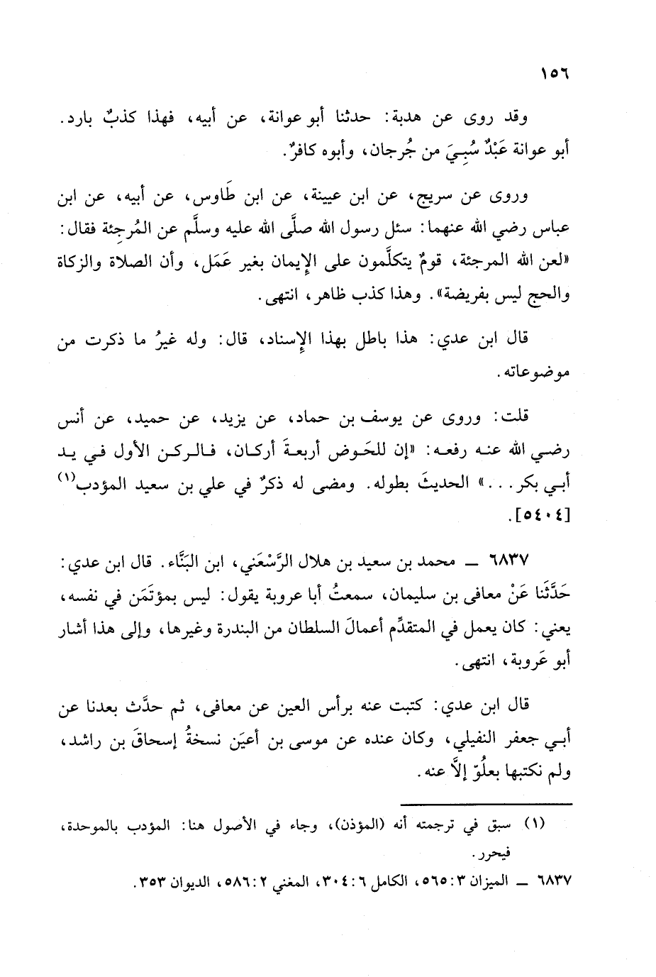 قال ابن عَدِي: كتبت عنه برأس العين عن معافى ثم حدث بعدنا، عَن أبي جعفر النفيلي وكان عنده عن موسى بن أعين نسخة إسحاق بن راشد ولم يكتبها بعلو إلا عنه.