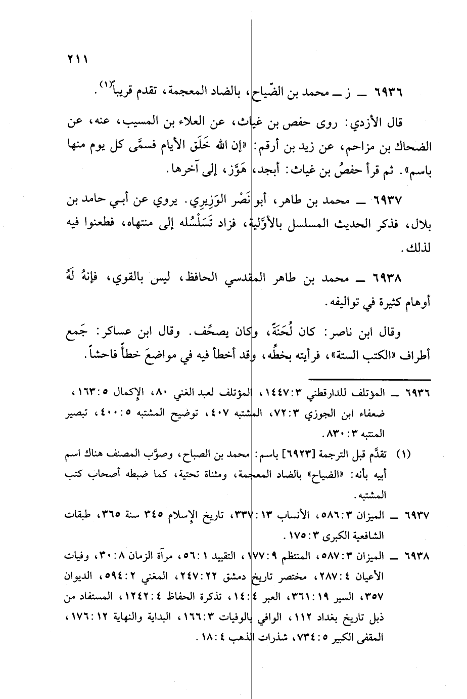 6936 - (ز): محمد بن الضياح - بالضاد المعجمة.