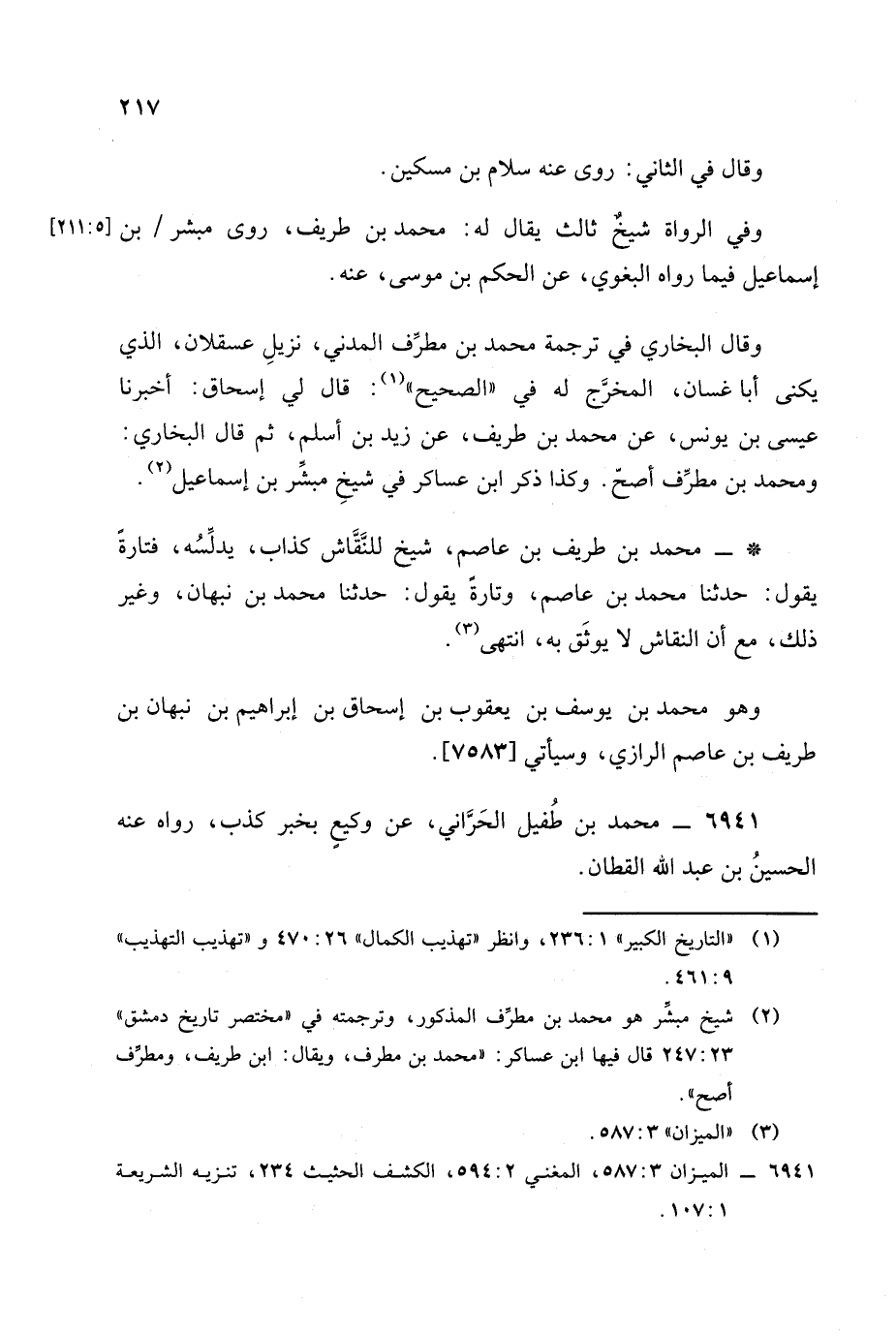 • محمد بن طريف بن عاصم [هو محمد بن يوسف بن يعقوب بن إسحاق بن إبراهيم بن نبهان بن طريف بن عاصم الرازي]