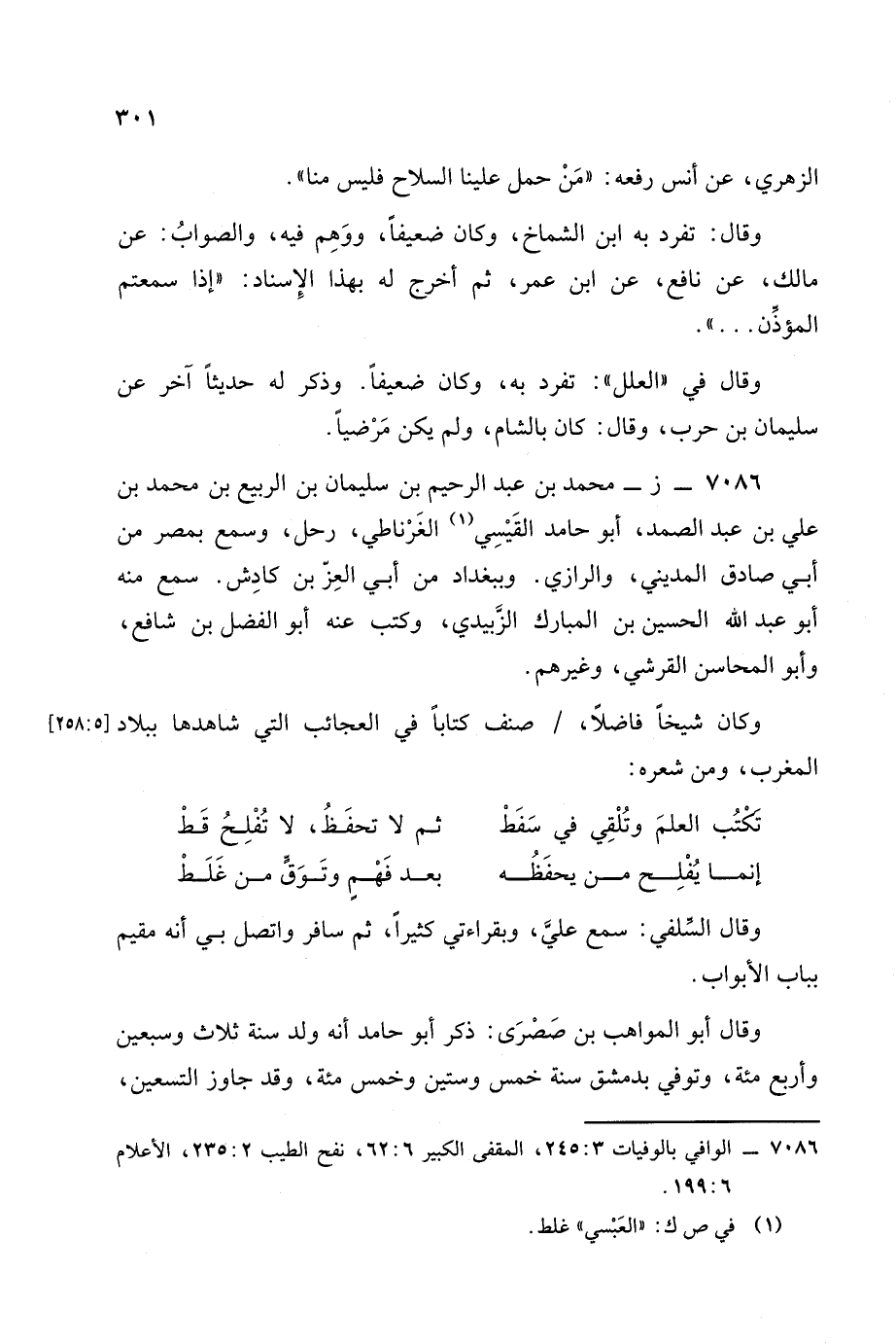7086 - (ز): محمد بن عبد الرحيم بن سليمان بن الربيع بن محمد بن علي بن عبد الصمد أبو حامد القيسي الغرناطي.