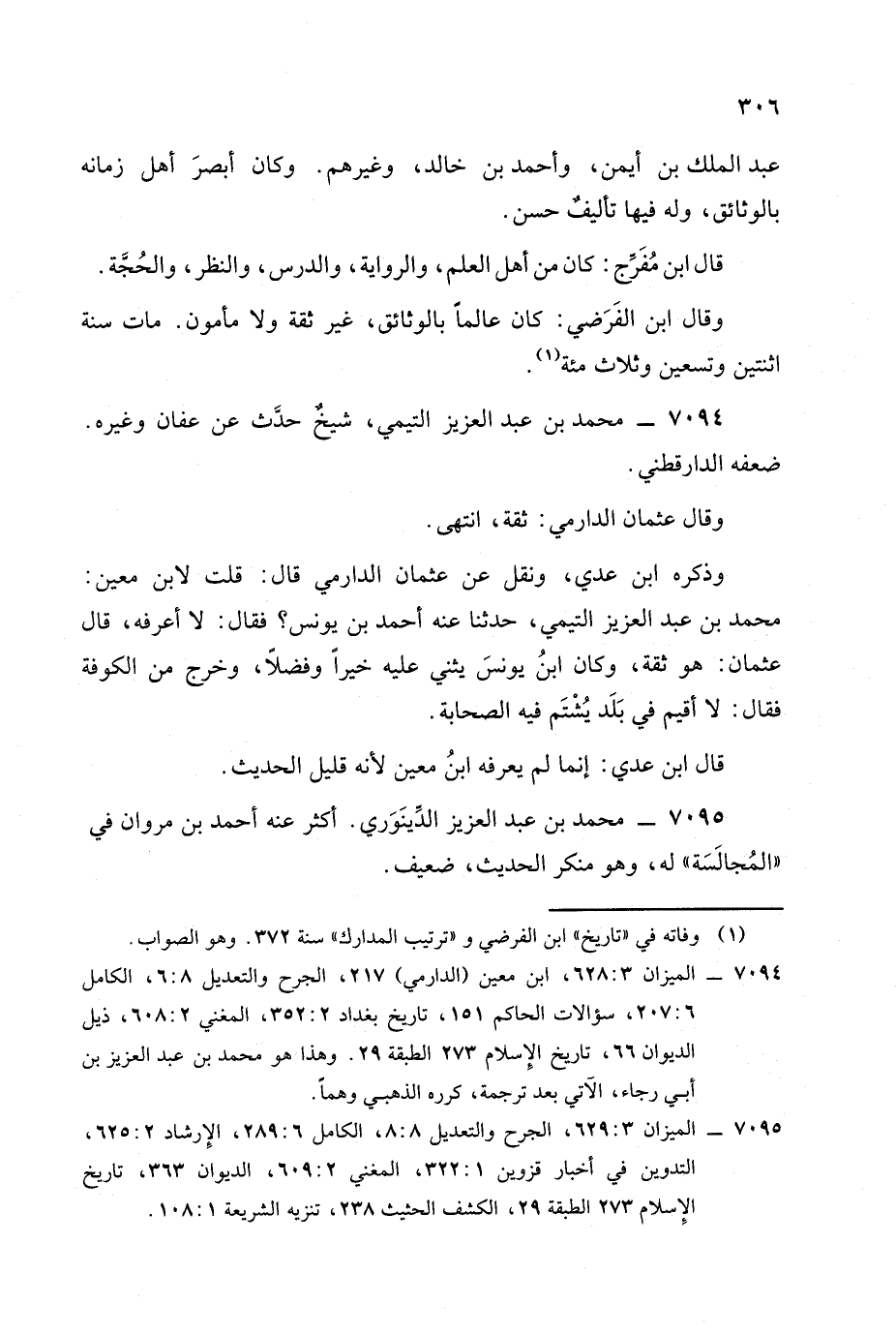 قلت: سماعه من عمر بن حفص محتمل فلعله سمعهما منه خاصة ولذلك اقتصر عليهما فأمره في ذلك محتمل لكن ذكره الخليلي في تاريخ قزوين وقال: لم يكن بذاك القوي سمع من شيوخ العراق كأبي نعيم والقعنبي وقدم قزوين سنة نيف وستين ومئتين. -[308]-