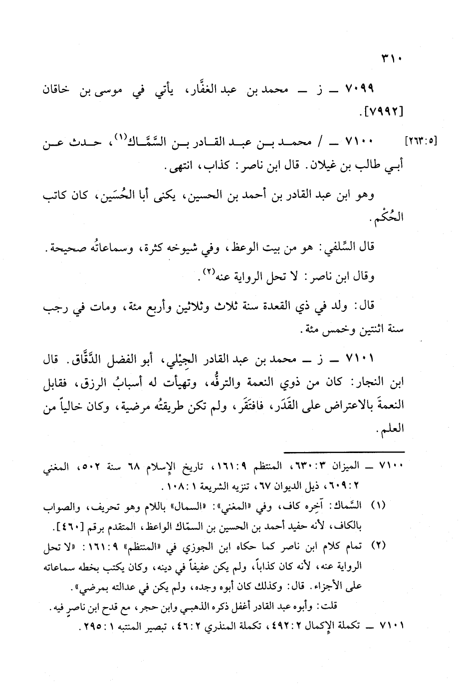 7100 - محمد بن عبد القادر بن السماك [وهو محمد بن عبد القادر بن أحمد بن الحسين أَبُو الحسين]