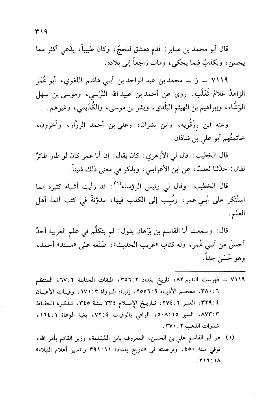 7119 - (ز): محمد بن عبد الواحد بن أبي هشام اللغوي أبو عمر الزاهد غلام ثعلب.