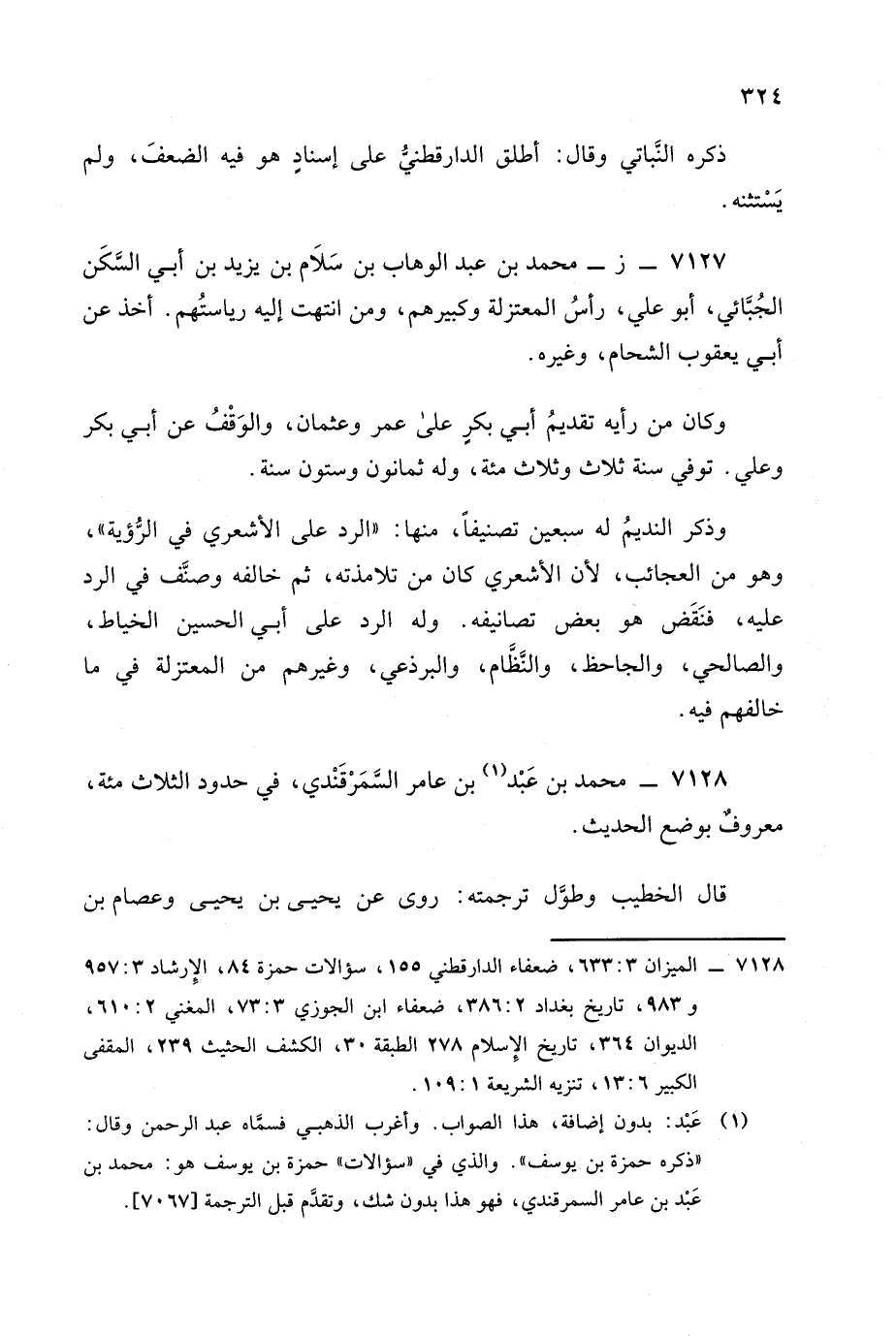 7127 - (ز): محمد بن عبد الوهاب بن سلام بن يزيد بن أبي السكن الجبائي أبو علي.