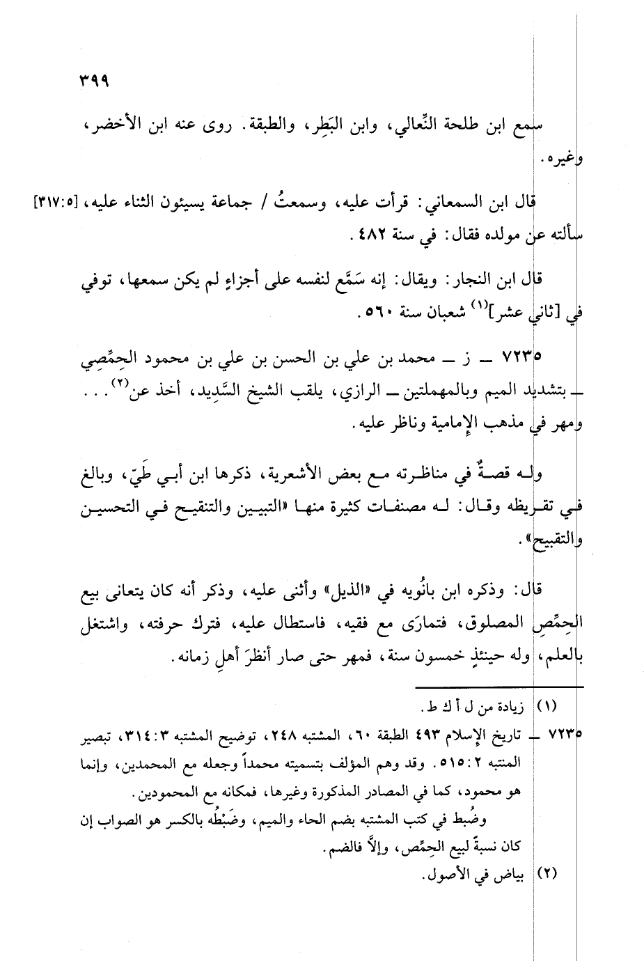 7235 - (ز): محمد بن علي بن الحسن بن علي بن محمود الحمصي - بتشديد الميم وبالمهملتين - الرازي يلقب الشيخ السديد.