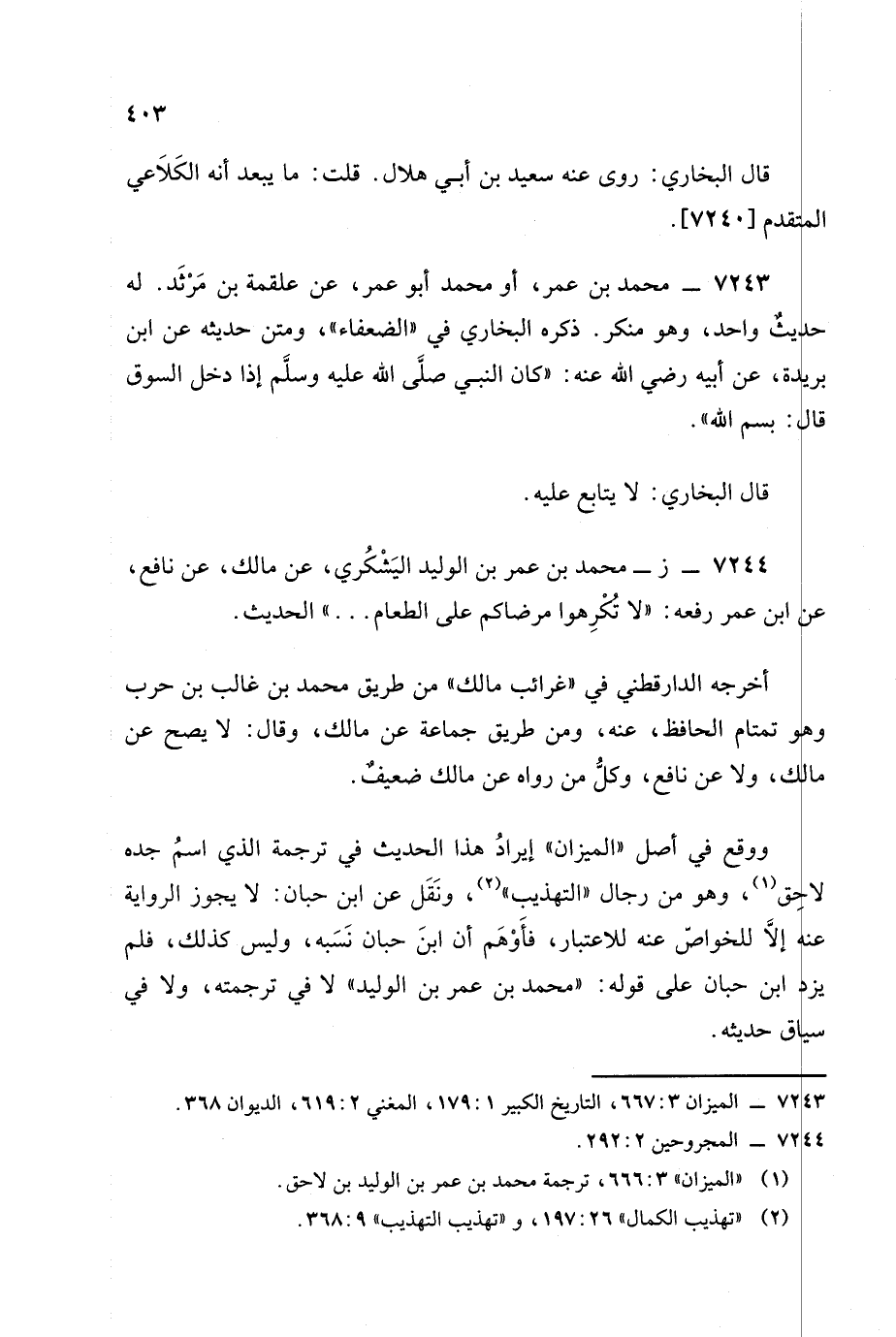ووقع في أصل الميزان إيراد هذا الحديث في ترجمة الذي اسم جده لاحق وهو من رجال التهذيب ونقل عن ابن حبان: لا يجوز الرواية عنه إلا للخواص عنه للاعتبار فأوهم أن ابن حبان نسبه وليس كذلك فلم يزد ابن حبان على قوله: محمد بن عمر بن الوليد لا في ترجمته، وَلا في سياق حديثه. -[404]-