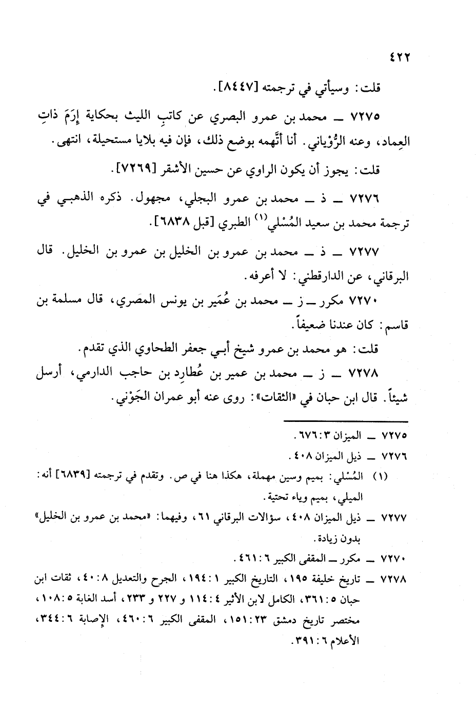 7277 - ذ- محمد بن عمرو بن الخليل بن عمرو بن الخليل.