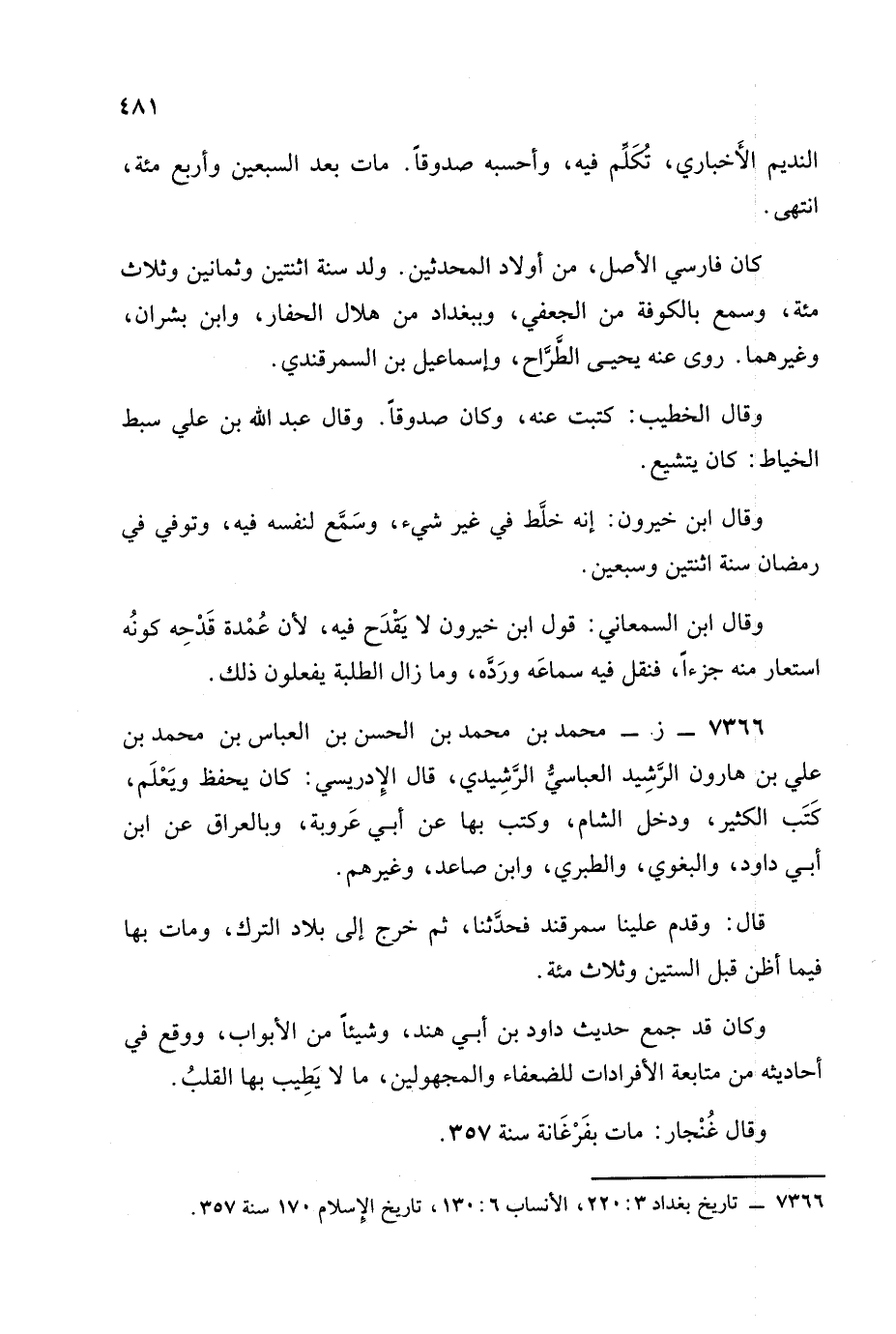 وقال غنجار: مات بفرغانة سنة 357.