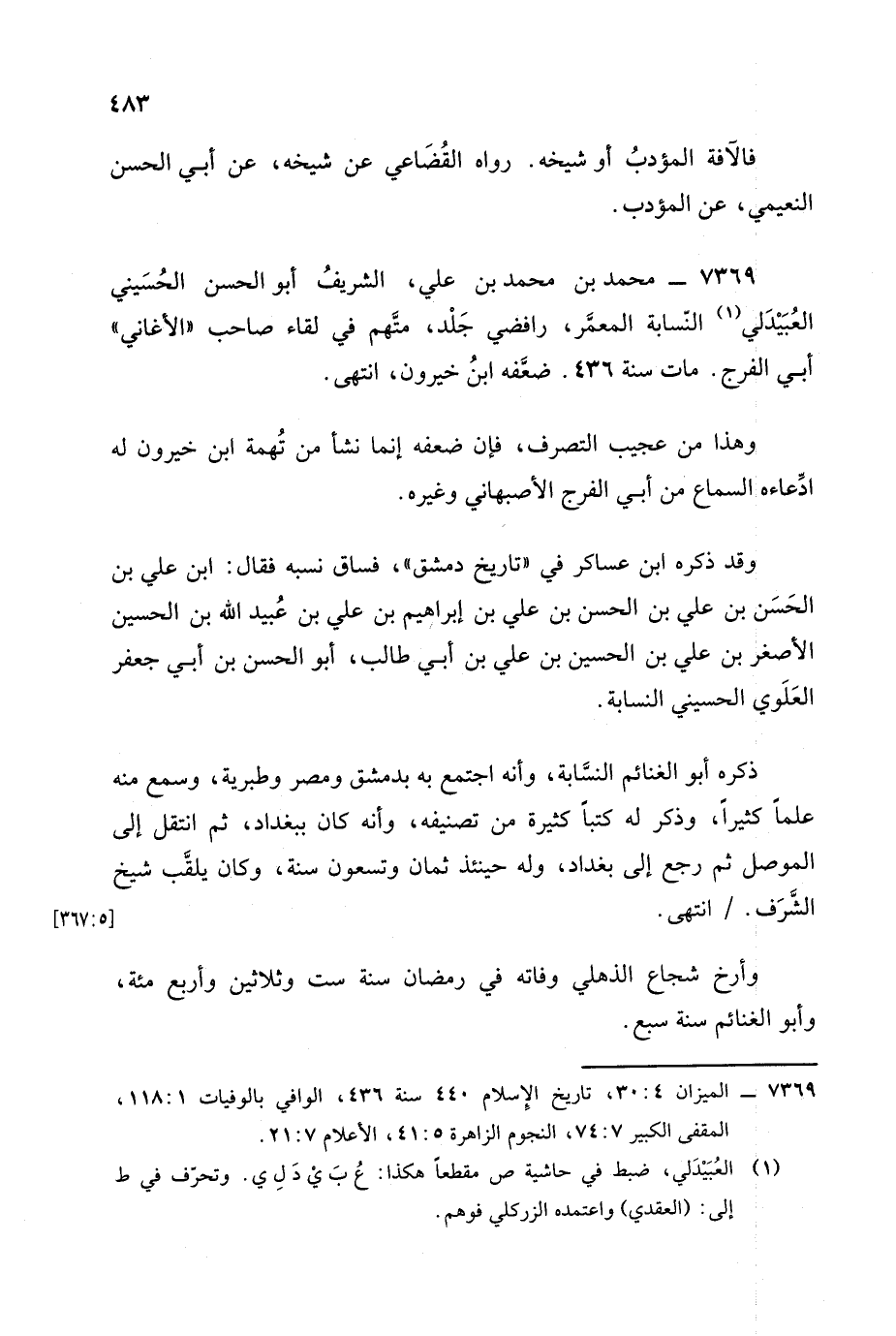 7369 - محمد بن محمد بن علي الشريف أبو الحسن الحسيني العبيدلي النسابة المعمر.